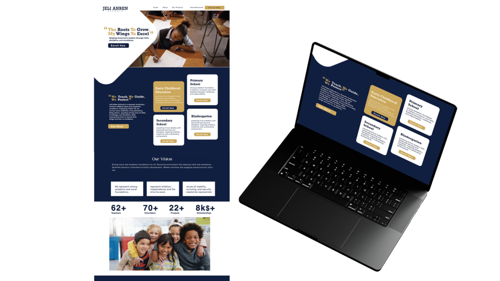 At Big Tag Studio, our role was to translate Jeli Anben’s vision — “The roots to grow, my wings to excel” — into a compelling brand identity and digital presence. We designed a modern logo, cohesive visual system, and a user-friendly website that not only communicates the school’s values but also builds trust with parents and stakeholders. Our focus was to create branding that feels aspirational yet approachable, positioning Jeli Anben as a forward-thinking institution that prepares students for growth, excellence, and impact.